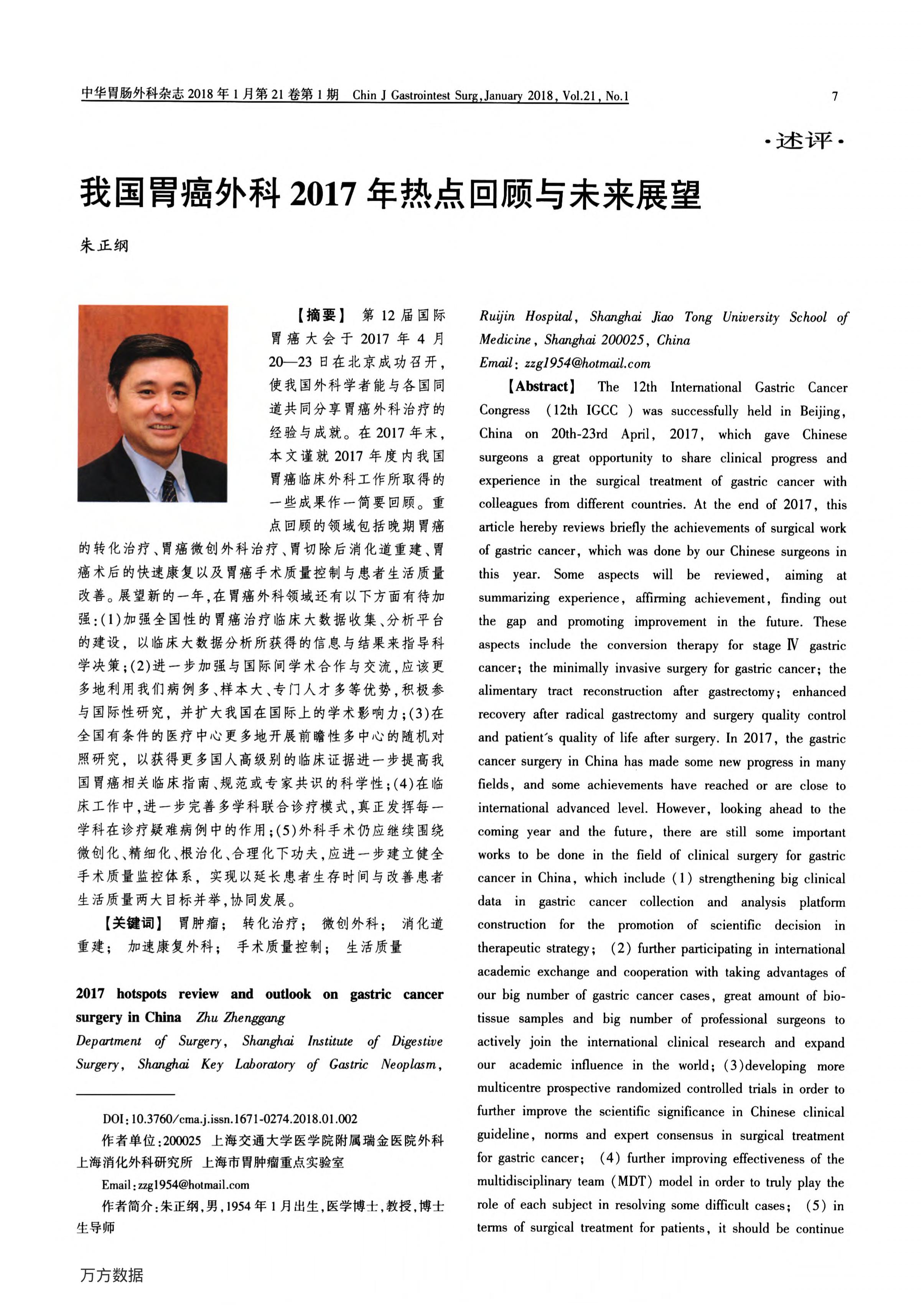 我國胃癌外科2017年熱點(diǎn)回顧與未來展望