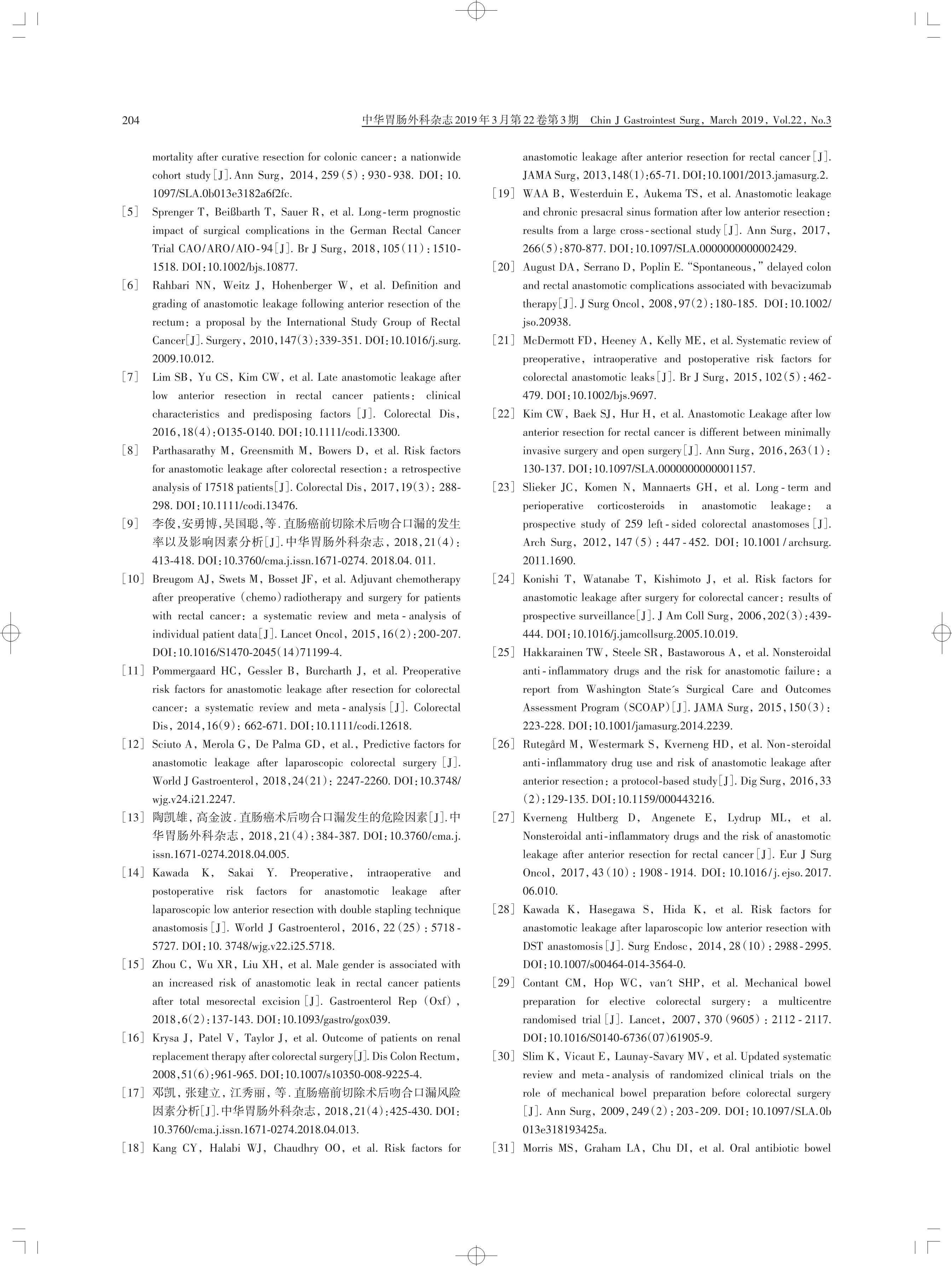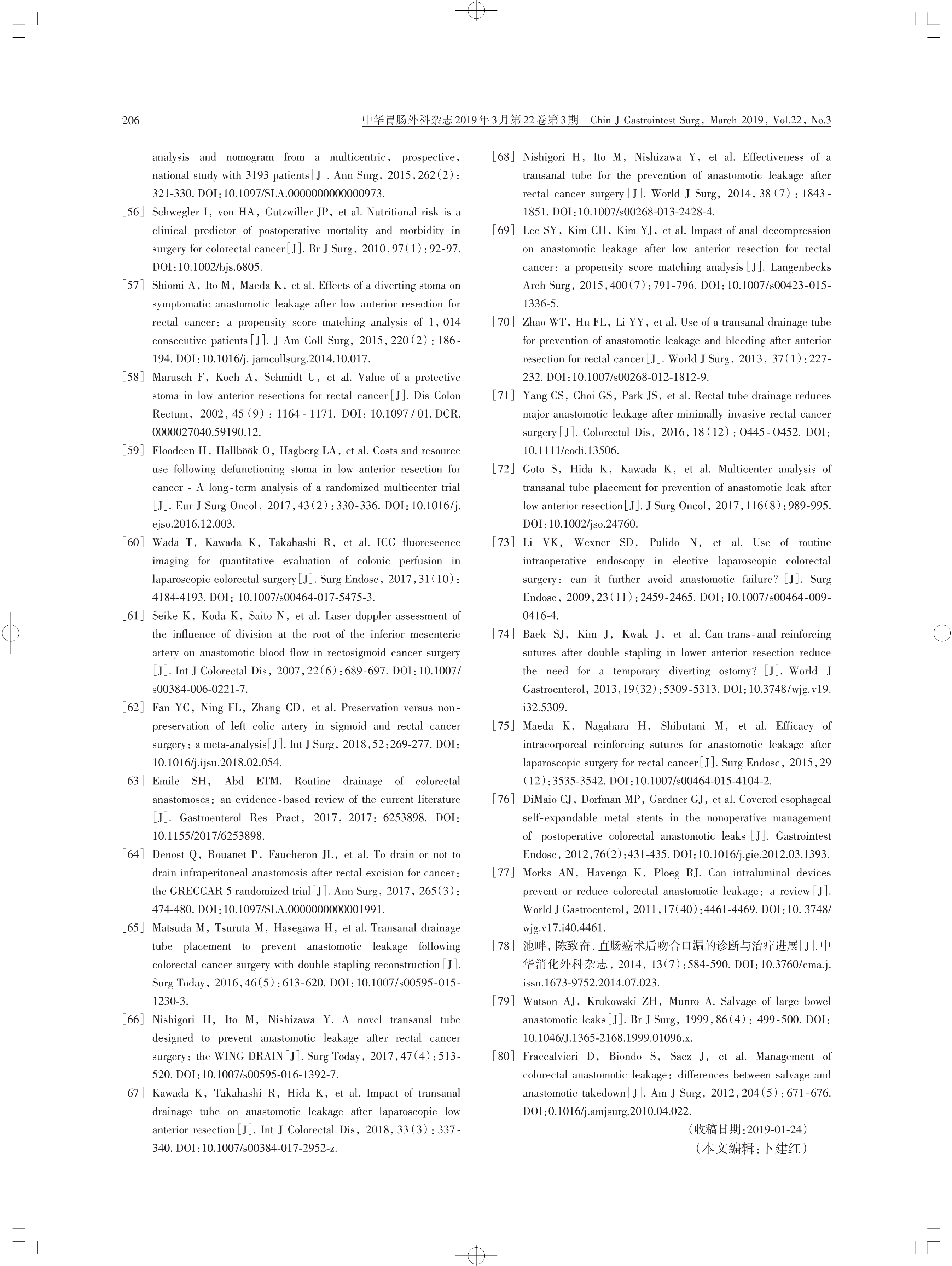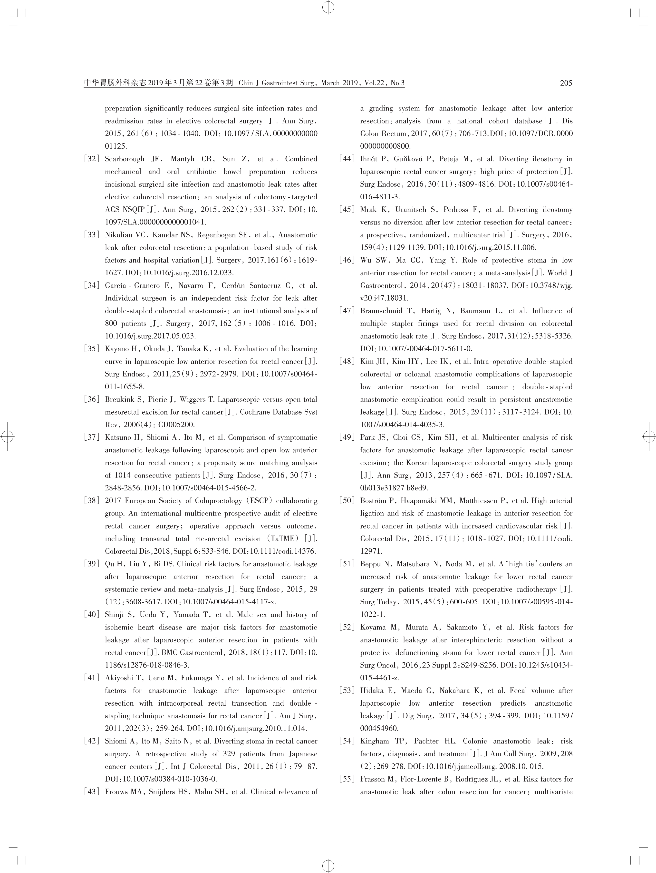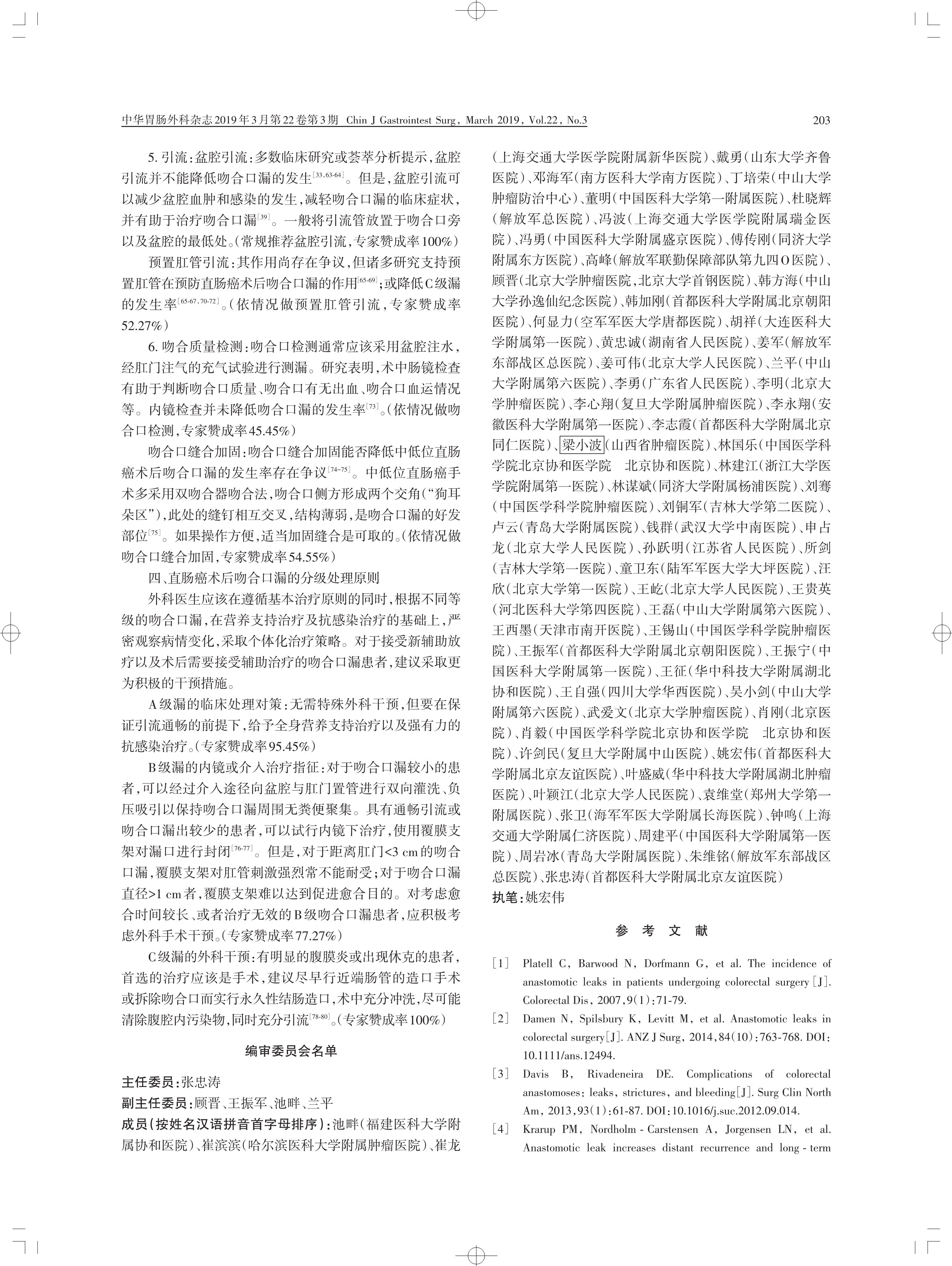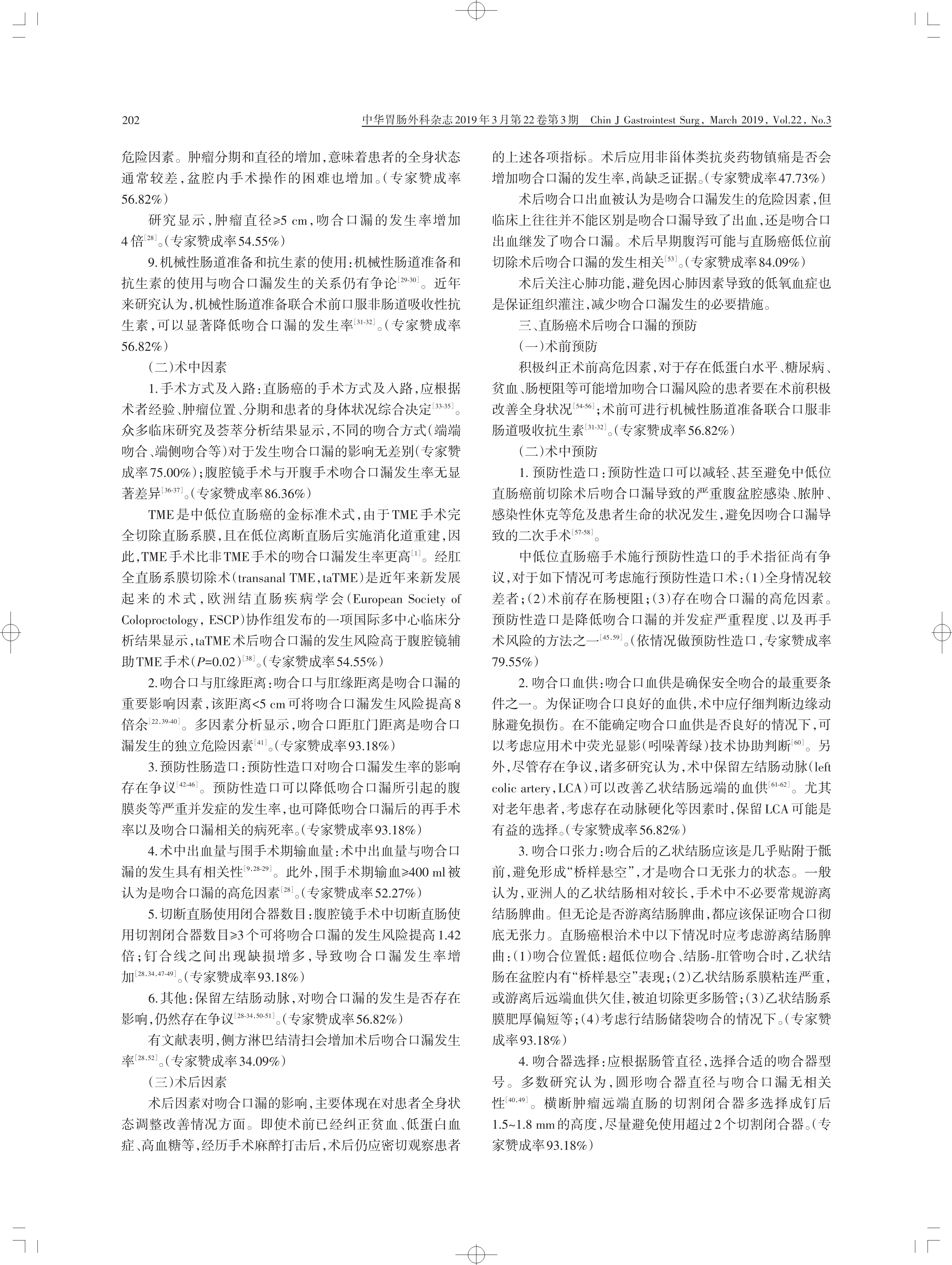 中國直腸癌手術吻合口漏診斷、預防 及處理專家共識(2019 版)