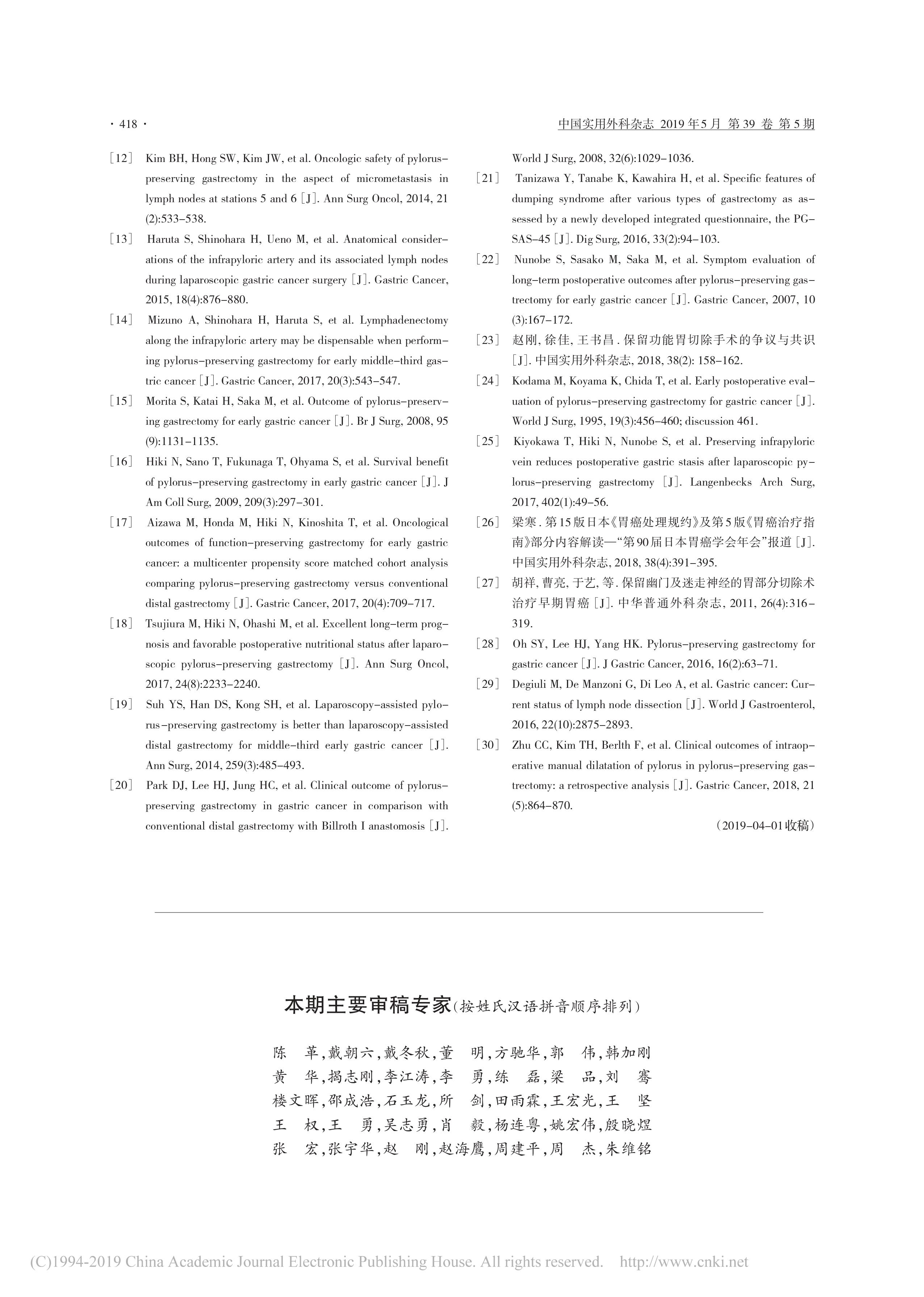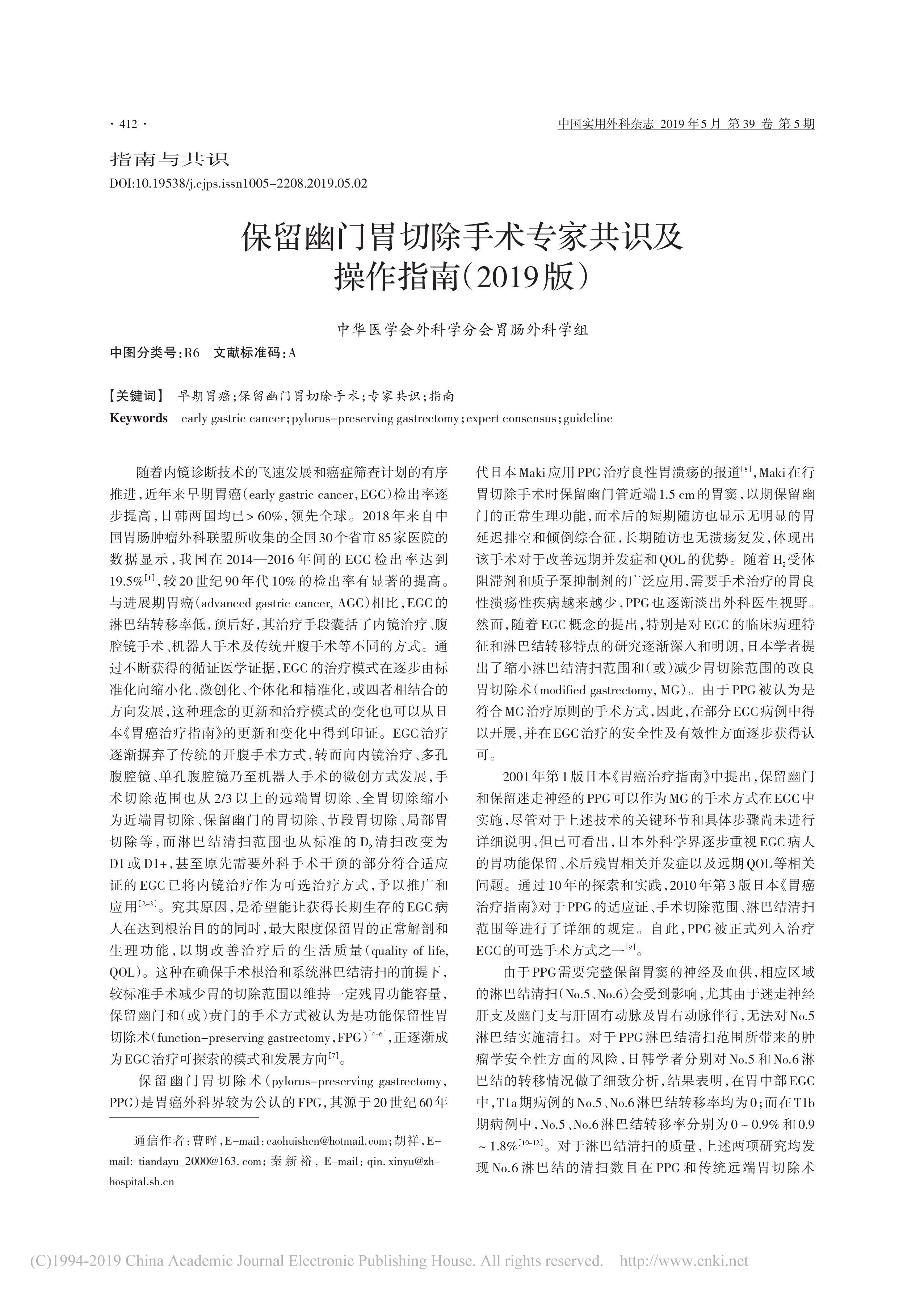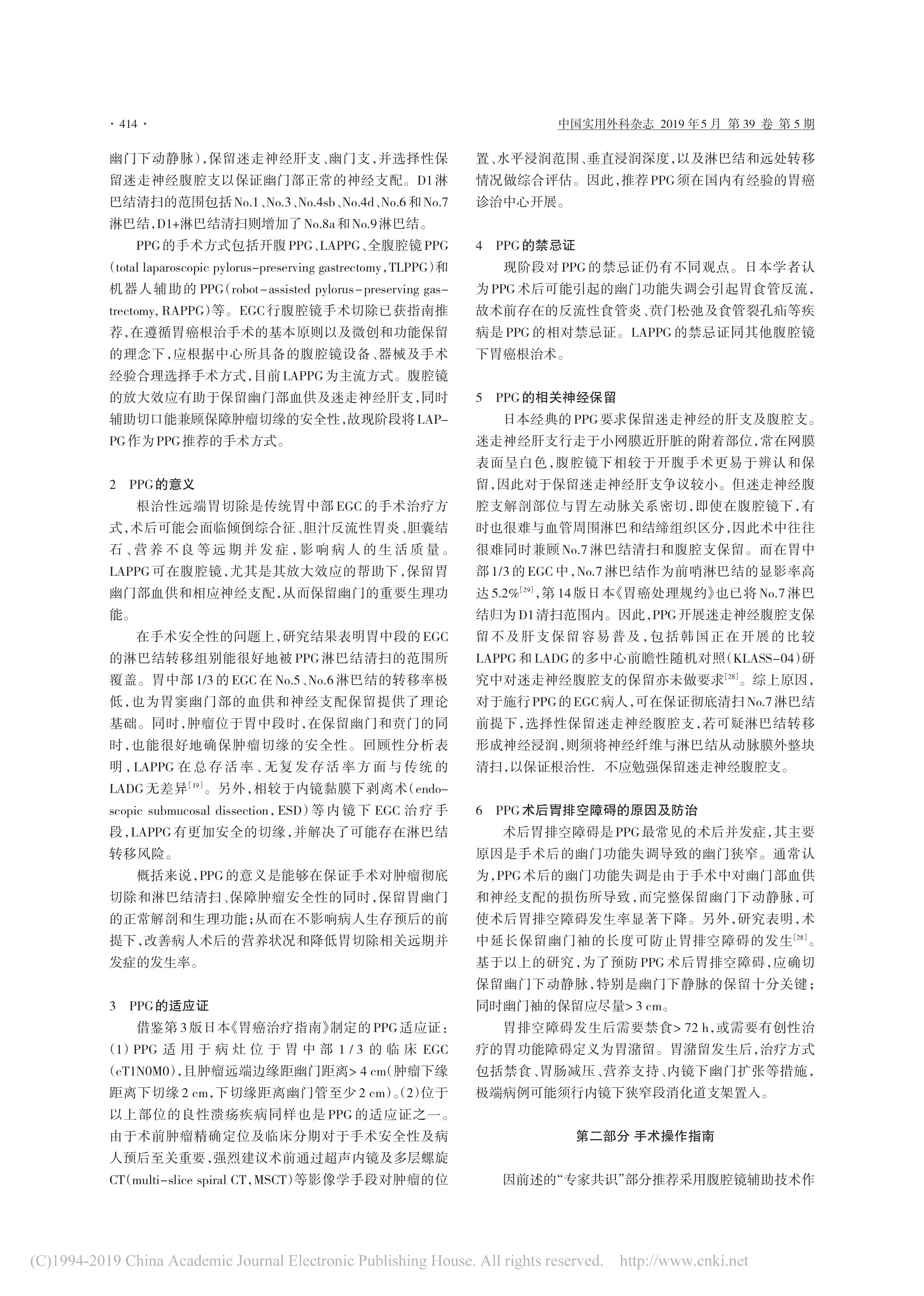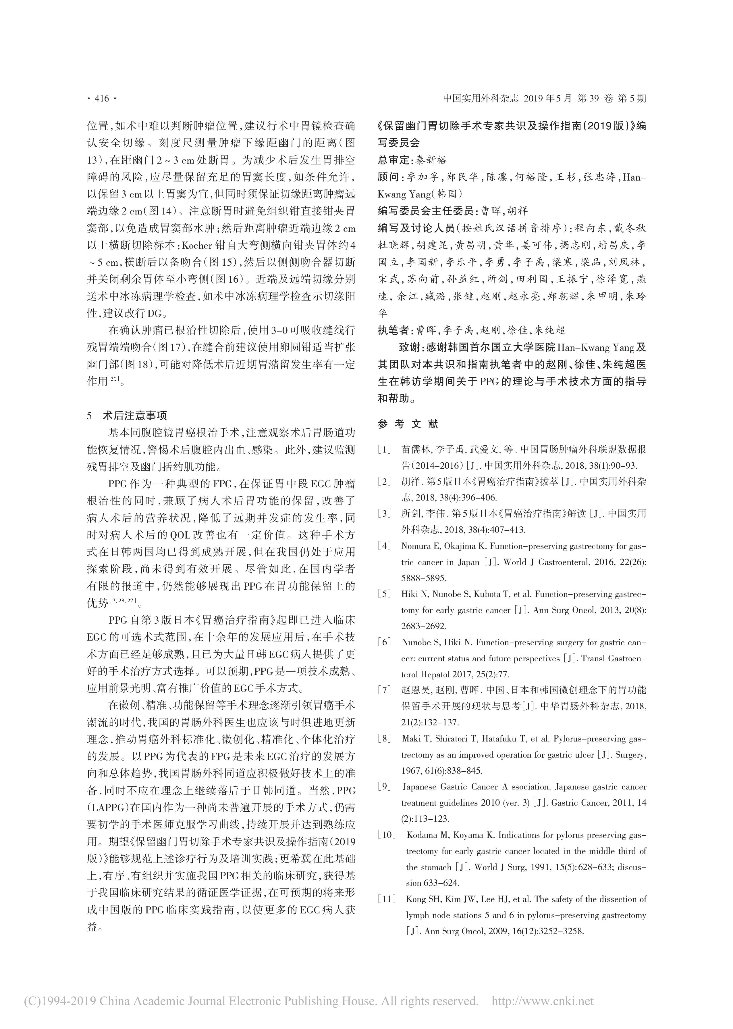 保留幽門胃切除手術專家共識及操作指南(2019 版)